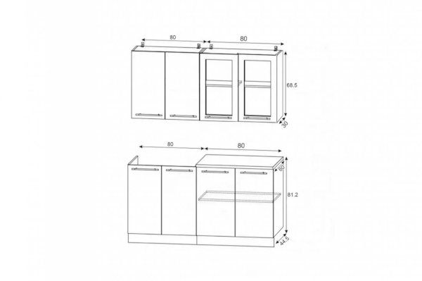 Глубина нижних шкафов (мм) | 445 / 600 |