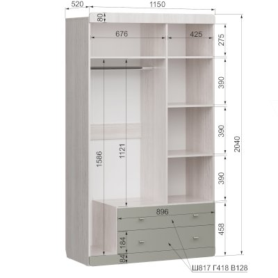 Трехстворчатый шкаф Юкка 25 (Аквилон)
