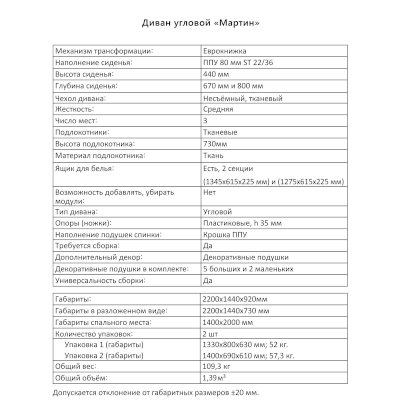 Угловой диван Мартин (Аквилон) продается в интернет-магазине mebelin-lyubercyi.ru по цене 51 915 руб. Есть доставка по Люберцам и Московской области. Возможность подъема на этаж и сборки уточняйте у менеджера по телефону 8(800)505-27-11.