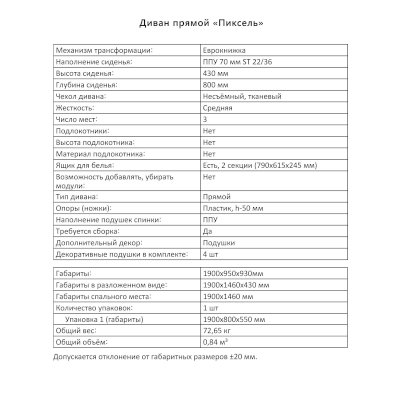 Диван Пиксель (Аквилон) продается в интернет-магазине mebelin-lyubercyi.ru по цене 30 299 руб. Есть доставка по Люберцам и Московской области. Возможность подъема на этаж и сборки уточняйте у менеджера по телефону 8(800)505-27-11.