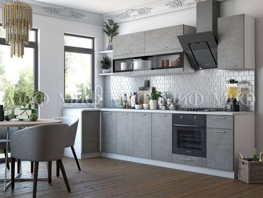 Модульная кухня Техно Бетон светлый (Миф) продается в интернет-магазине mebelin-lyubercyi.ru по цене 15 128 руб. Есть доставка по Люберцам и Московской области. Возможность подъема на этаж и сборки уточняйте у менеджера по телефону 8(800)505-27-11.