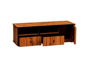 Даже если у вас нет ТВ, то тумба под ТВ должна быть обязательно! Ведь на нее можно поставить все, что захотите - большую плазменную панель, стереосистему или и то, и другое – габариты тумбы это позволяют! В дизайне поддерживается концепция асимметричности. Два отсека-близнеца: открытая полка и под ней выдвижной ящик плюс просторный ящик за распашной дверцей.