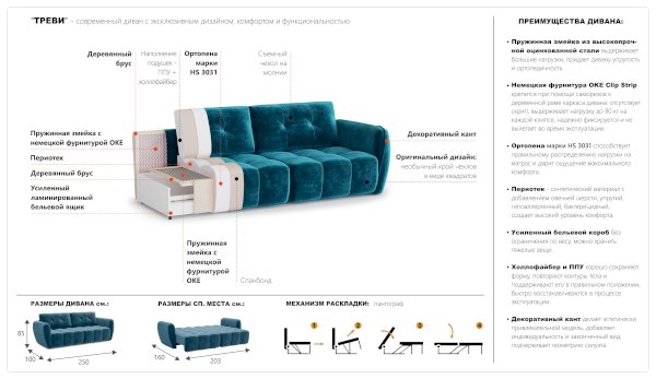 Угловой диван Треви-3 (Империал) продается в интернет-магазине mebelin-lyubercyi.ru по цене 108 210 руб. Есть доставка по Люберцам и Московской области. Возможность подъема на этаж и сборки уточняйте у менеджера по телефону 8(800)505-27-11.