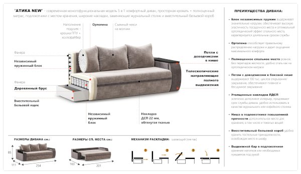 Диван Атика (Империал) продается в интернет-магазине mebelin-lyubercyi.ru по цене 69 362 руб. Есть доставка по Люберцам и Московской области. Возможность подъема на этаж и сборки уточняйте у менеджера по телефону 8(800)505-27-11.