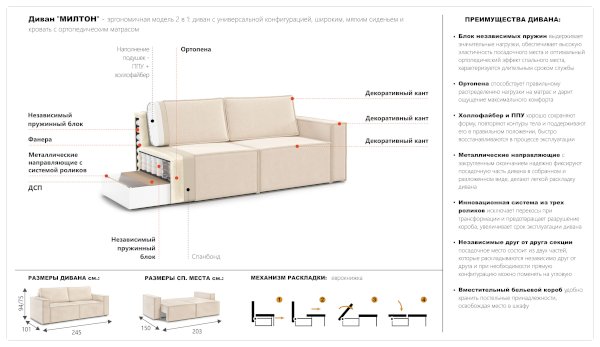 Диван Милтон (Империал) продается в интернет-магазине mebelin-lyubercyi.ru по цене 60 770 руб. Есть доставка по Люберцам и Московской области. Возможность подъема на этаж и сборки уточняйте у менеджера по телефону 8(800)505-27-11.