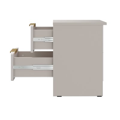 - Стильные ручки в цвете «пыльно-матовое золото».
